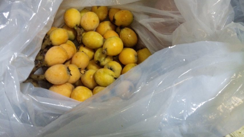食い尽くす速度がダメになる速度に負けた、ゴミ袋いっぱぃのビワでした。