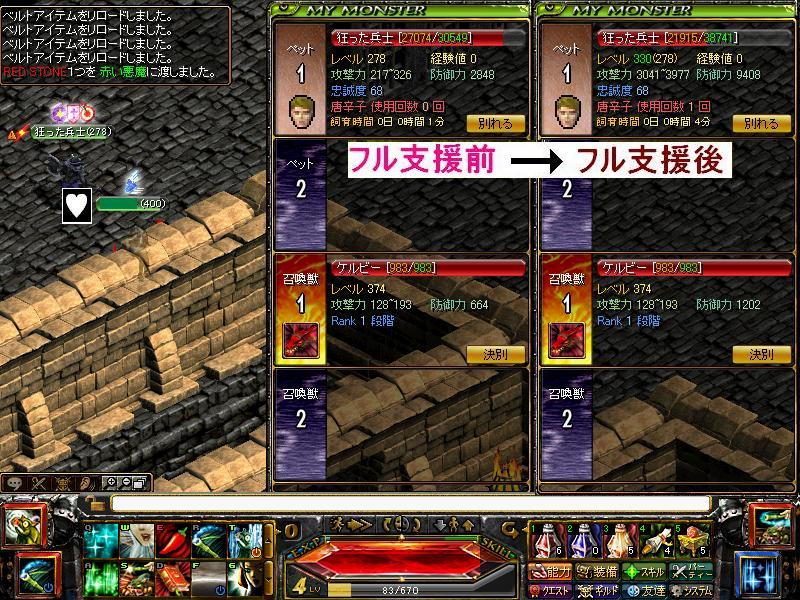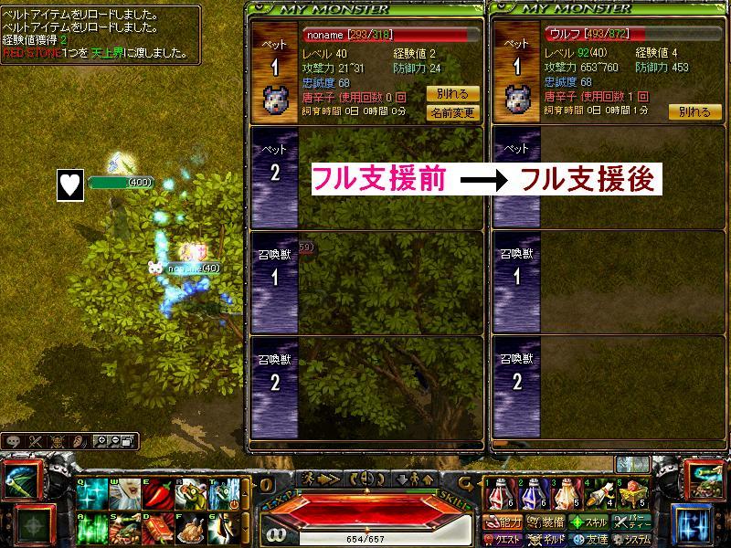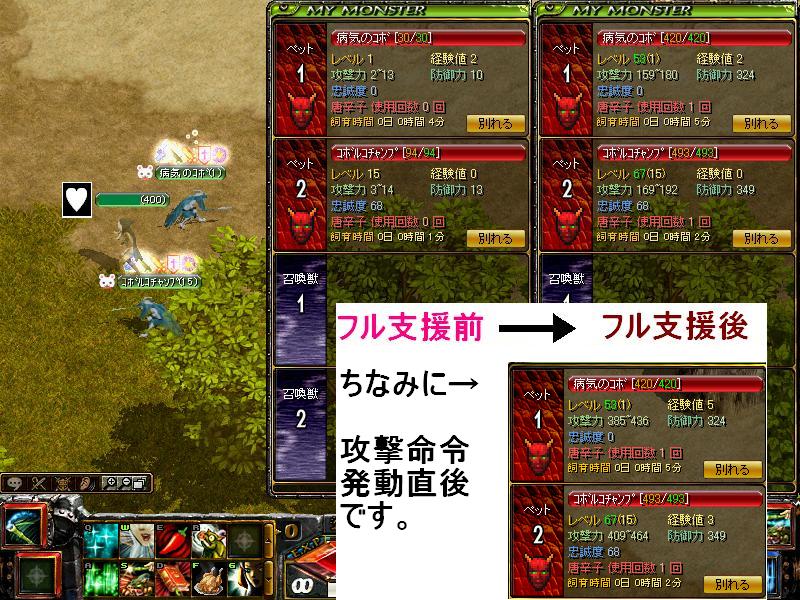 励ます(ペットの基本防御&攻撃力の一時上昇)・褒める(ペットlvの一時上昇)