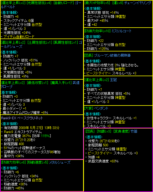 掲載SS時は運装備(ミニペット→光神霊&水神霊)・秘密や移動の際には移動装備・お手伝い時にのみスキル笛装備
